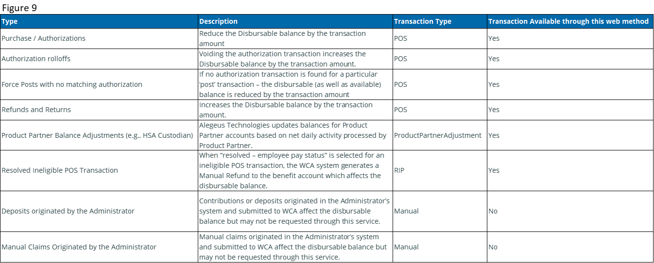 - GetDisbursableBalanceAffectingTxns - This method is used to retrieve a list of transactions that result in updating disbursable balance on the account within the last 30 days